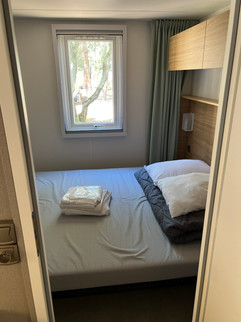We stayed in a 3 bedroom Azure static home with aircon. It had a double bedroom with a queen size bed and 2 twin bedrooms. The beds seemed slightly slimmer than singles. We could have had one swapped with a cot/s but my girls both sleep in beds. We had a kitchen with oven grill, gas hob, microwave and full sized fridge/freezer and a modern power shower. We also had a balcony with table chairs and sunbeds.